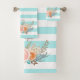 Chic Aqua Stripes Feminine Floral and Name Bath Towel Set