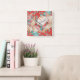 Chic Aqua Turquoise Coral Red Seashells Pattern Square Wall Clock