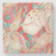 Chic Aqua Turquoise Coral Red Seashells Pattern Stone Coaster