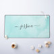 Chic Aqua Watercolor Calligraphy Script Desk Mat
