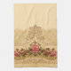 Chic Art Nouveau Gold and Red Floral Tea Towel