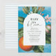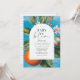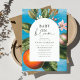 Welcome your little one with our Baby in Bloom baby shower invitation, a graceful balance of vintage charm and modern refinement. A luminous blue watercolor background highlights a vibrant orange still resting on its delicate branch, framed by soft white blossoms for a striking, artful contrast. A crisp white arched frame overlays the scene, slightly smaller to let the citrus and florals subtly emerge, adding depth and quiet sophistication. Inside the arch, your personalized details unfold in an elegant mix of vintage-inspired lettering and contemporary script, giving “Baby in Bloom” a refined yet fresh presence. The result is a timeless, Mediterranean-inspired invitation that feels artistic, polished, and effortlessly chic.