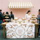 Create a polished and memorable market display with this Chic Baking Utensils Bakery Logo Market Booth Sign Tablecloth, designed specifically for bakery market booths, pop-up shops, and vendor tables. This tablecloth is thoughtfully styled to run down the center of your table, with the graphic panel hanging in the front, a soft blush pink stripe design across the tabletop, and extra fabric draping neatly at the back for a cohesive, professional look. The design features a circle crest logo with a hand-drawn cupcake illustration styled to resemble a charming French bakery storefront. Accented with hand-drawn baking utensils—including a whisk, spoon, piping bag, and rolling pin—along with delicate floral details, this tablecloth brings an elegant, artisanal feel to your setup. Fully customizable, the crest allows you to add your bakery name, tagline, or slogan, making it perfect for boutique bakeries, cupcake shops, patisseries, and farmers' market vendors. Ideal for farmers' markets, craft fairs, pop-ups, and events, this tablecloth elevates your brand while creating a warm, inviting presentation that attracts customers. Design and hand-drawn illustration by © Moodthology Papery