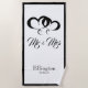 CHIC BEACH TOWEL_CLASSIC, MODERN, MR & MRS BLACK TEXT ON WHITE. BLACK HEARTS. NAME AND DATE IN BLACK.