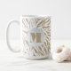 A stylish mug features a pattern of beige wild animal print accented with your chic initial monogram. Create for yourself or give as a gift.