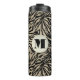 A stylish thermal tumbler features a pattern of beige and black wild animal stripes print accented with your chic initial monogram. Create for yourself or give as a gift. MATCHING items in our collection.