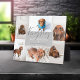 Simply upload 6 of your most precious photos from your computer or phone to this modern, elegant photo plaque for pets, featuring the pets name in an elegant calligraphy script and 'best dog ever', message and dates on a pale grey block background that can be changed to any colour. Makes a wonderful pet loss sympathy gift for yourself, family or friends.