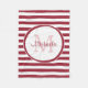 Chic Big Stripes Monogrammed Name in Red and White Fleece Blanket