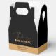 🎉 Welcome your guests with the sophisticated Black Gold Chic Elegant Favour Box, a perfect blend of deep black and radiant gold that adds a chic and elegant touch to any birthday celebration. The front displays “thank you for coming” in shimmering gold on a sleek black background, while the bottom band shines in gold and proudly shows the celebrant’s name and age in black. The back mirrors this refined design, creating a seamless look that works beautifully for woman, man, and unisex parties of all ages. The Black Gold Chic Elegant Favour Box is crafted from sturdy cardstock, ensuring durability while maintaining a luxurious feel. 🎈✨