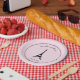 These elegant, French style wedding paper plates feature a black image of the Eiffel tower on a pink background. Personalised with your wedding information in black French and Art Deco style text. A very Parisian and chic look for your wedding.