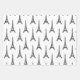 A set of three coordinated gift wrap sheets including one sheet of diamond / harlequin pattern, one sheet of Eiffel Towers, and one sheet of a pattern of "Bonjour Paris"