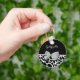A chic black and white giraffe print keychain with an elegant silver gray ribbon tied into a feminine bow. Personalize this girly animal print design by adding your name. Flat printed image, not actual bow.