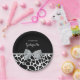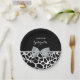 Chic black and white giraffe print paper plates with an elegant silver grey ribbon tied into a feminine bow. Personalise this girly animal print design by adding the name of the party girl. Flat printed image, not actual bow.