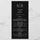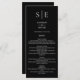 This elegant black and white wedding menu can be personalised with your monogram initials and wedding menu information set in chic typography. Designed by Thisisnotme©