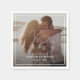 Modern wedding napkins featuring a simple yet elegant design with your two initial monogram in a contemporary script font along with your event details surrounded by a border, over your favourite photo.