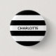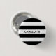 Chic black and white stripes custom name monogram text pin button