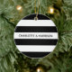 Chic black and white stripes custom name monogram Christmas Ceramic Ornament