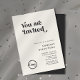 This "Chic Black and White Typography You are Invited Invitation" is a stylish and sophisticated way to announce the grand opening of your business. The design features a clean and minimalist aesthetic with a focus on elegant retro typography against a soft, neutral background. The phrase "you are Invited" is prominently displayed, conveying excitement and celebration. This invitation is more than just a piece of cardstock; it's a statement piece that sets the tone for a memorable and successful grand opening event.