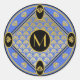 Chic Black & Azure Art Deco Fan Pattern Monogram Classic Round Sticker