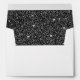 Elegant white invitation envelope, with graphics of a black glitter look, on the inside. Personalise the black return address, on the back flap.