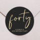 Elegant black 40th birthday party stickers for your invitations, party favours, thank you cards, etc., featuring "forty" showcased in a chic gold script.