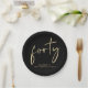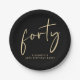 Elevate your 40th birthday party decor with these chic black paper plates featuring "forty" showcased in a modern gold script.