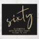 Elegant black sparkling wine labels for your 60th birthday party featuring "sixty" showcased in a chic gold script and your name and the date in simple gold lettering.