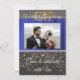 Chic Black and Gold invitation with blue silk introduces the photograph of the couple.