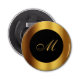 This chic bottle opener for wedding favours features your monogram in faux gold calligraphy on a black background and framed with shiny faux gold. Designed by Susan Coffey.