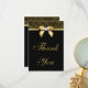Elegant custom black and gold wedding Thank You flat cards with a chic faux gold foil chevrons pattern and glamourous shiny gold printed bow image and pretty digital diamond bling jewel on a classy black background. PLEASE NOTE: These are flat printed graphics - no real bow or raised parts. Text, background colour, font and colour of font can all be customised. If you need assistance customising your product please contact me through my store. I will be happy to help. I have matching products in my store.