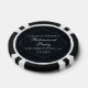 This chic black and gold retirement party favor features a modern geometric hexagon around your personalized message in white typography. Elegant poker chips for a retiree to be celebrated by friends and family at the end of their career.