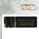 The left-hand edge of this elegant modern wedding invitation return address label features a black watercolor agate border trimmed with faux gold glitter. The customizable text combines gold colored handwriting script and copperplate fonts on an off-black background.