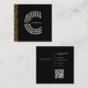 Chic Black Gold Diamond Initial C Monogram QR Code Square Business Card
