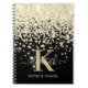 Chic Black Gold Glitter Diamond Monogrammed Notebook