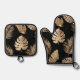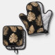 Chic Black Gold Tropical Leaves Oven Mitt & Pot Holder Set