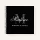 Stylish Monogram Black White Grey Script Name square notebook for your new home office, administrative and professional work, back to school, artwork sketches, recipe notes etc. Choose from a variety of insert types including wide rule, college rule, and blank for sketching.