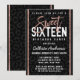 Chic Black Grey Rose Gold Glitter Cheetah Sweet 16 Invitation