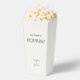 Delight wedding guests with a surprise midnight snack. This lovely wedding favour popcorn box features couple names and text in cyan black against a chic ivory background.
