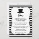 Look sharp, prim and proper with a touch of whimsical and fun with this trendy and chic black baby boy shower invitation. It features a simple design of elements of a gentleman which includes a top hat, a monocle one piece reading glass and a curly moustache. Black and white stripes pattern background is contrasting, unique and outstanding for a baby shower invitation. It also communicates the parents' aim to bring up a gentleman. Personalise easily with your party details.