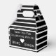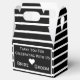 Perfectly classic black and white seersucker striped wedding favor box that is customizable.