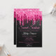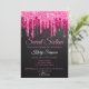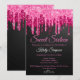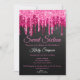 Chic Black Hot Pink Glitter Sparkle Sweet Sixteen Birthday Party Invitation with black background and pink dripping glitter.