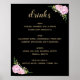 Chic Black Pink Roses Drinks Menu Poster