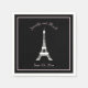 These elegant, French style wedding napkins feature a white image of the Eiffel tower on a black background. Personalised with your wedding information in pink French and Art Deco style text. A very Parisian and chic look for your wedding.