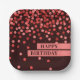 Chic Black Red Confetti Happy Birthday Paper Plate