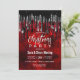 Chic black red silver glitter drips Christmas Invitation