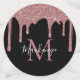 Girly Chic Black Rose Gold Glitter Drips Monogram Birthday Table Confetti with your photo, monogram, and name on our trendy faux blush pink/rose gold glitter drips on a chic black background. Please contact us at cedarandstring@gmail.com if you need assistance with the design or matching products.