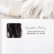 The left-hand edge of this elegant modern wedding invitation return address label features a black watercolor agate border trimmed with faux rose gold glitter. The customisable text combines charcoal grey handwriting and copperplate fonts on a white background.