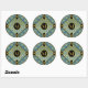 Chic Black &Teal Art Deco Fan Pattern Monogram Classic Round Sticker