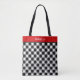 Personalised black white chess pattern with red band and calligraphy Tote Bag. Beautiful and modern Tote Bags!