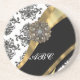 Chic black & white damask & gold coaster